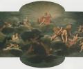 Los elementos específicos del detalle con Saturno que conforman la pintura de Viena presentan correspondencia con los mismos del presente dibujo con mínimas variantes, razón por la cual se trata de idea inicial y no de una copia de parte del techo.