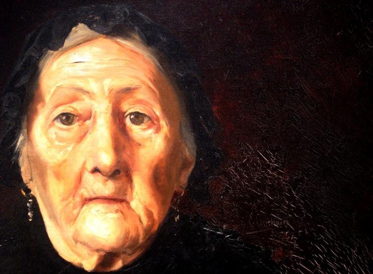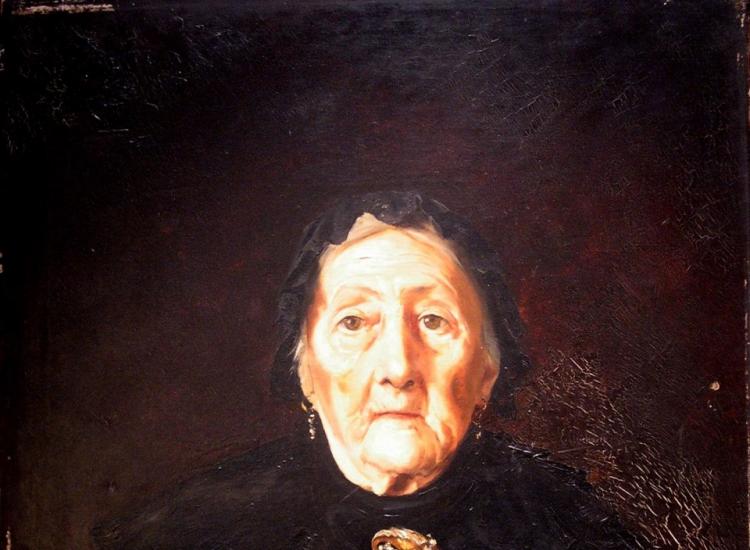 Desde 1912 hasta 1925 dirigió la Academia de España en Roma, sustituyendo a don Ramón María del Valle Inclán. Entre esos años, el 14 de mayo de 1922, ingresó en la Real Academia de Bellas Artes de San Fernando como académico suyo, con un destacado discurso titulado Ciencia y arte del colorido, un mensaje que creemos queda representado en el Retrato de anciana que aquí presentamos y nos ocupa, con su llamativa indumentaria negra sobre fondo monócromo oscuro: “el poder de la línea es inmenso, con sólo el trazo se pueden representar todas las formas de la naturaleza (...) el color no tiene ese poder y necesita de la línea como armazón en que fundarse”.